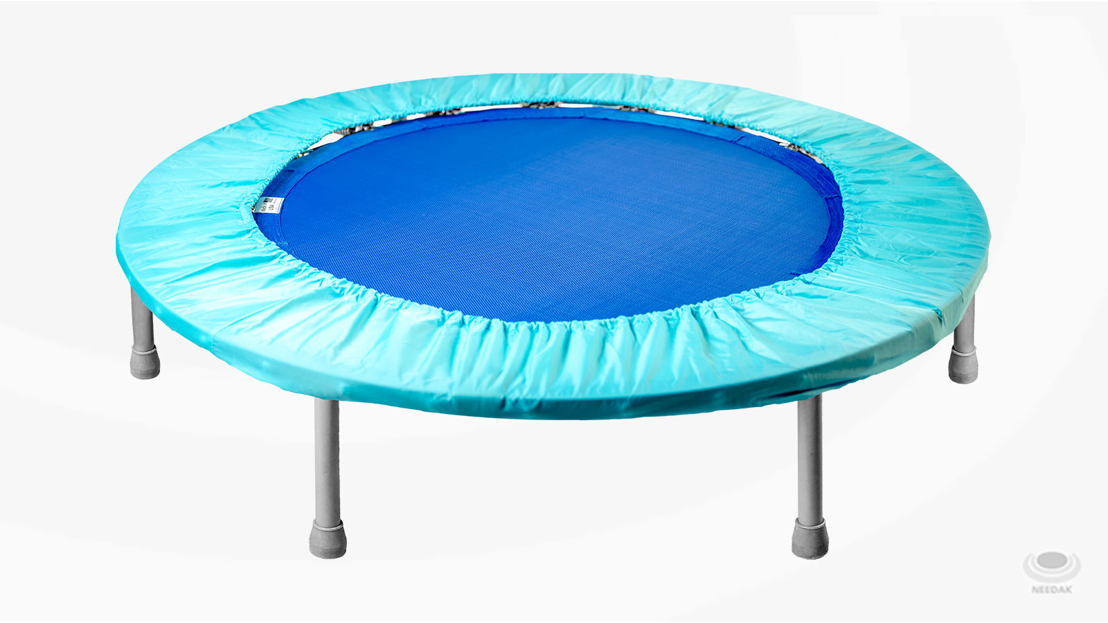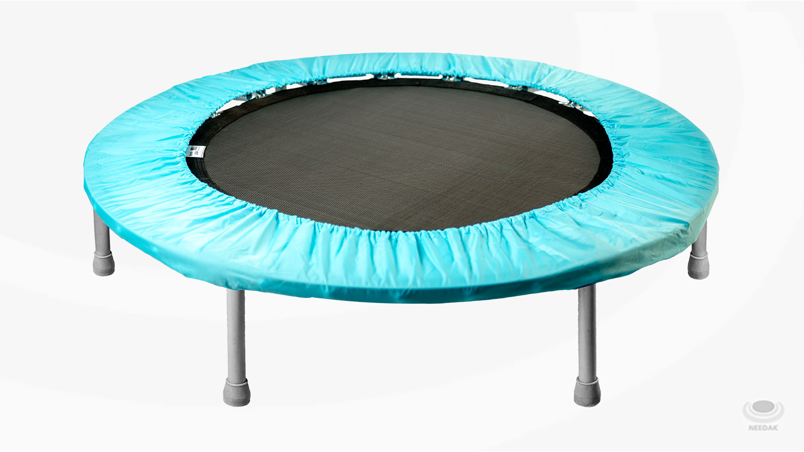 Light Blue spring cover for a 40″ diameter, 6 legged rebounder. Will cover the edge of the frame and to within 1/2″ of the jump surface. Universal for all Needak folding and non-folding units and some competing models.